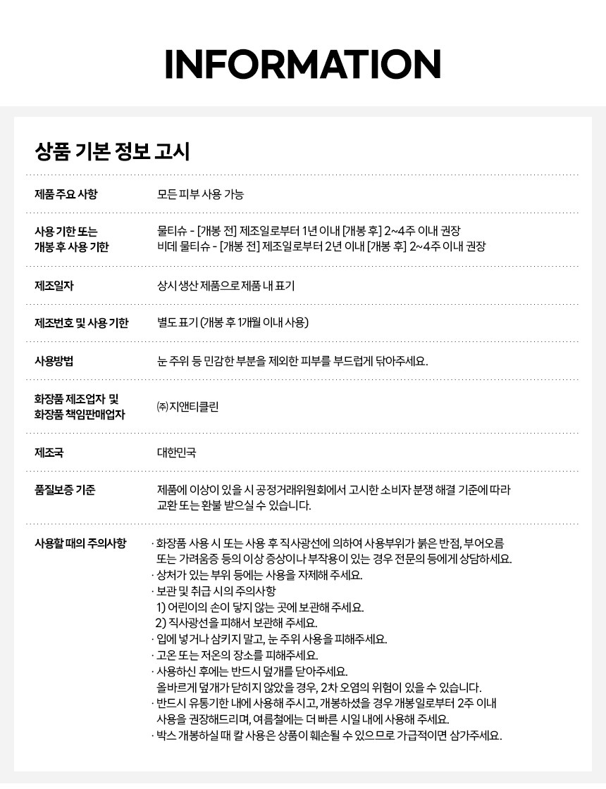 | 제조연월 및 유통기한 | 상품페이지 참고 |