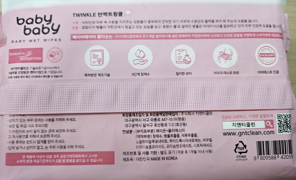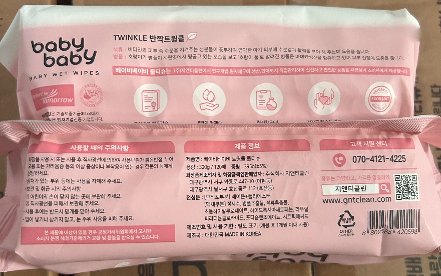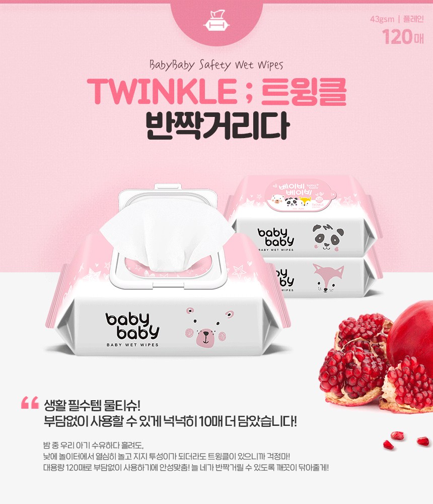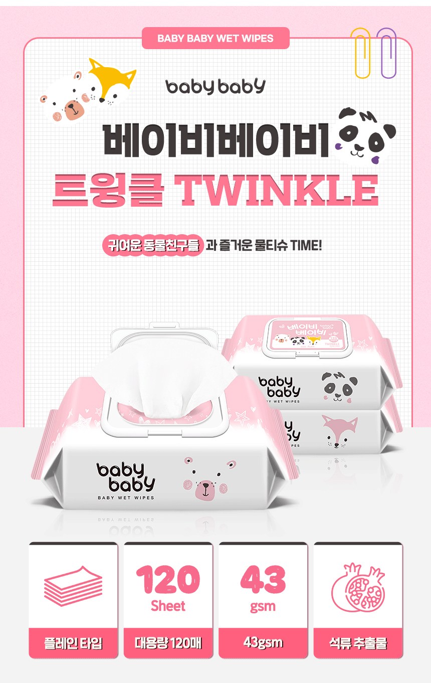 - 베이비베이비 트윙클 대용량 아기물티슈 캡형 120매 20개입