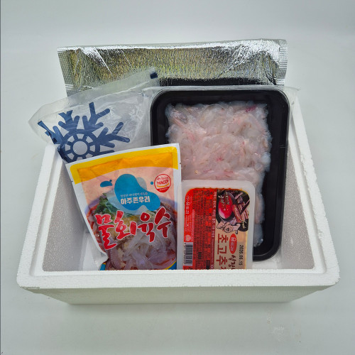 - 동해바다에서 조업한 기름 가자미(물가자미) 세꼬시 물회육수 세트 300g+초장100g 1팩+육수340g 1팩