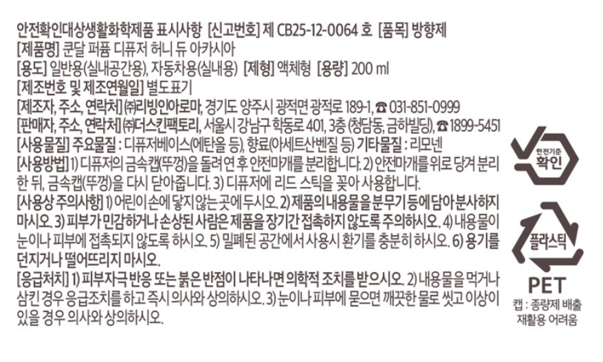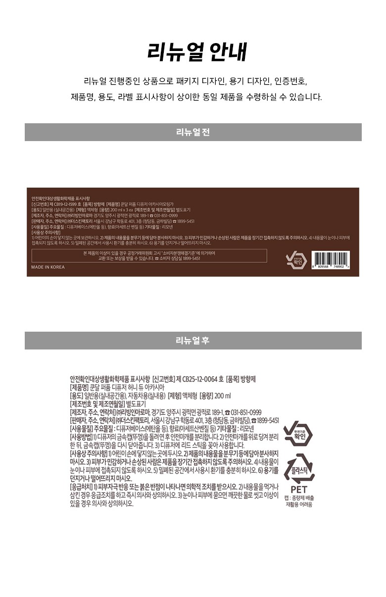 | 안전기준적합확인신고번호 또는 안전확인대상생활화학제품승인번호 | 상품페이지 참고 |