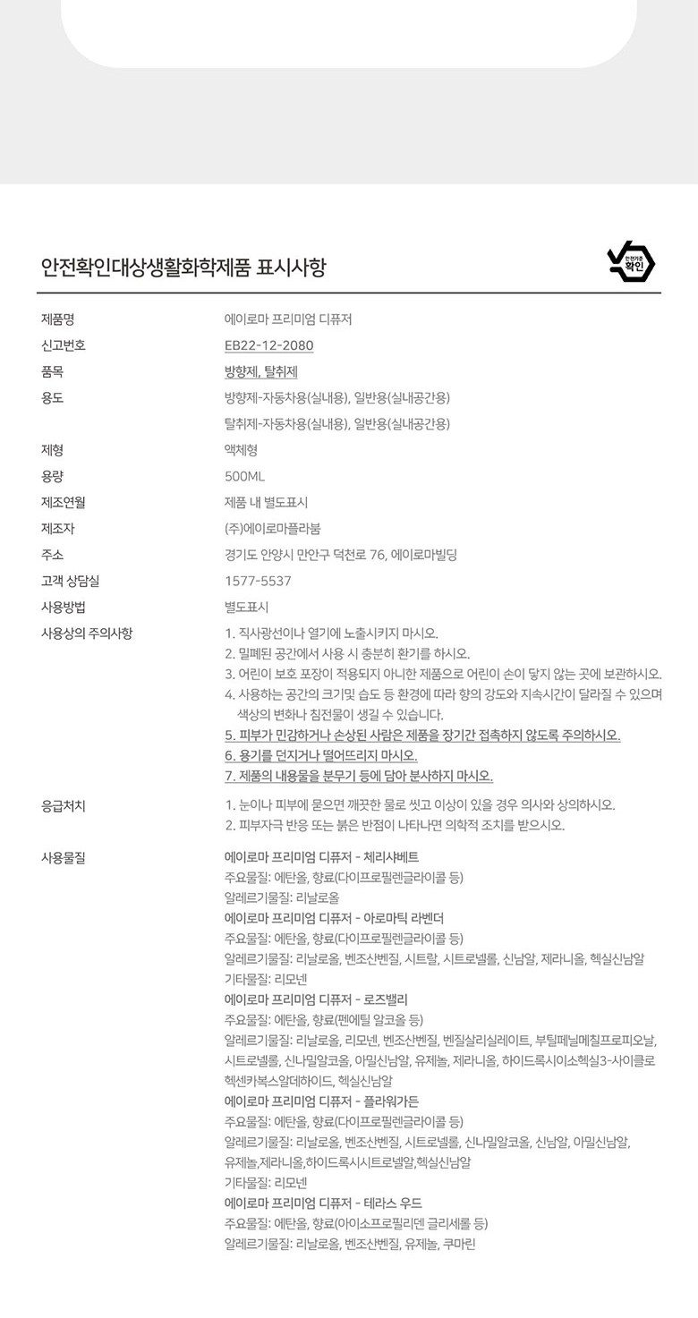 | 안전기준적합확인신고번호 또는 안전확인대상생활화학제품승인번호 | 상품페이지 참고 |