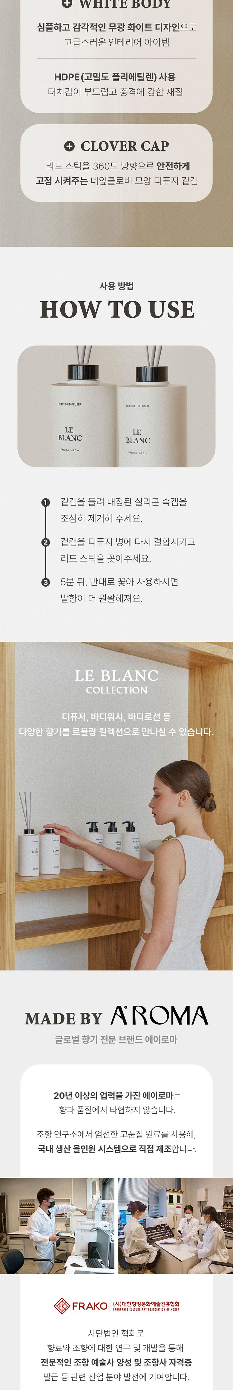 - 에이로마 르블랑 디퓨저 세트 500ml 2개입