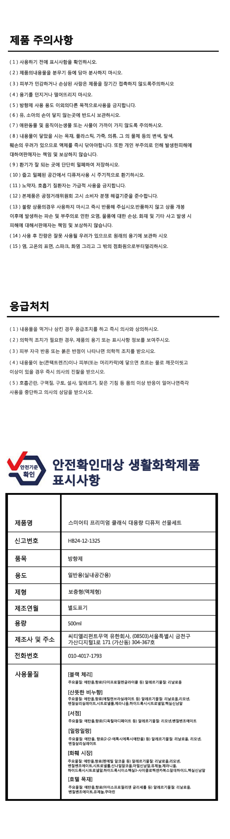 | 안전기준적합확인신고번호 또는 안전확인대상생활화학제품승인번호 | 상품페이지 참고 |