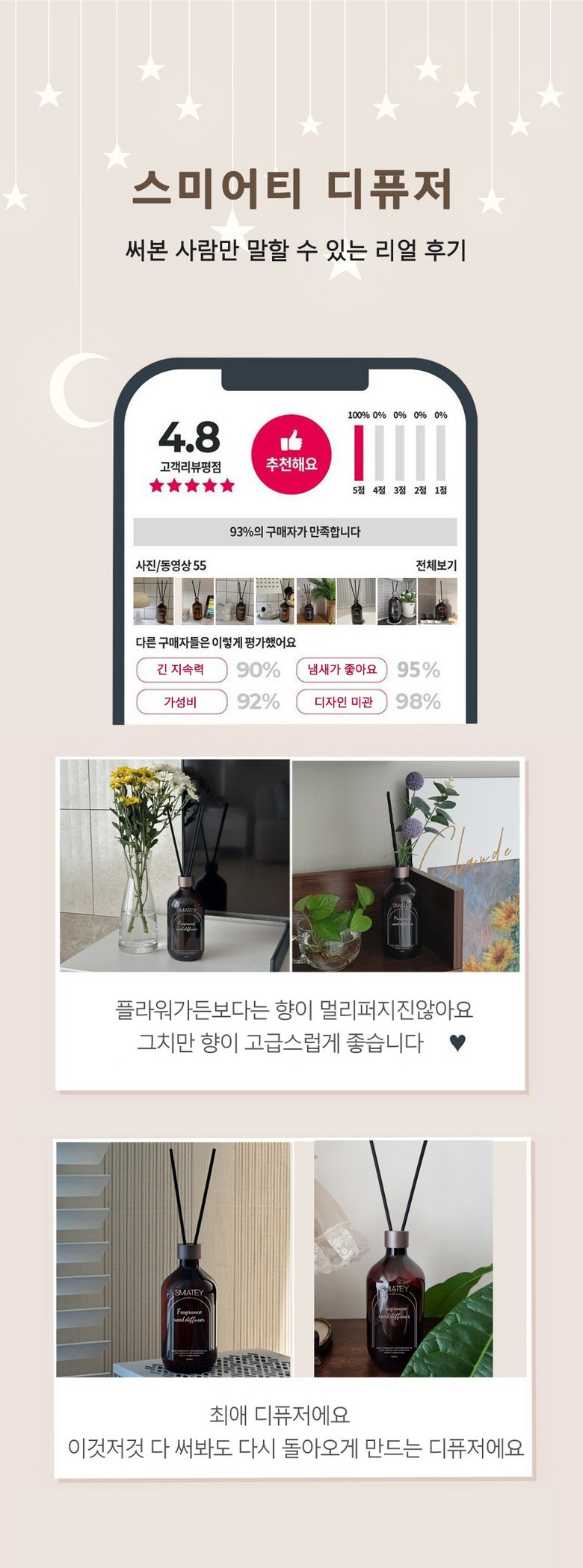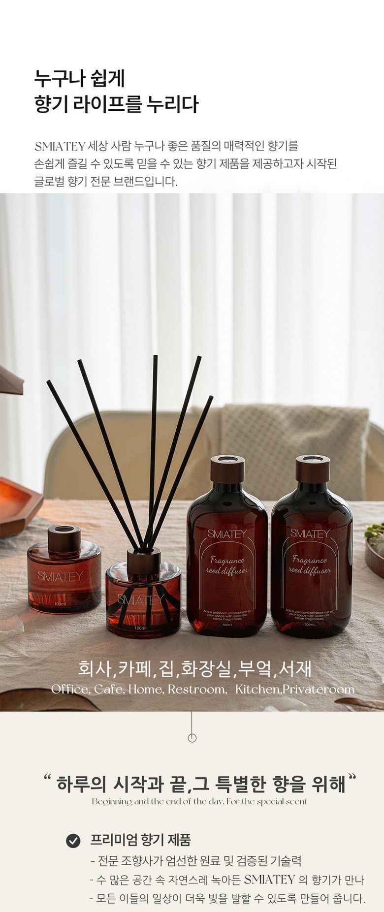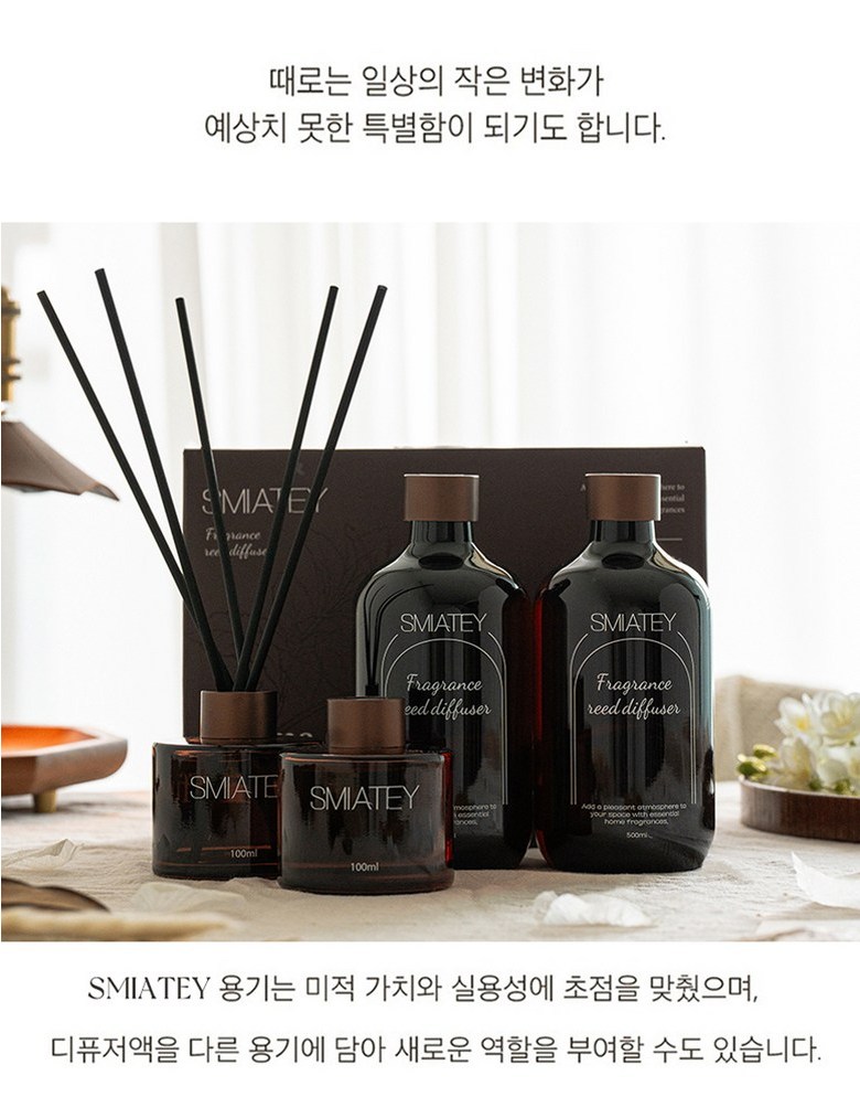 - 스미어티 프리미엄 실속형 500ML 대용량 실내디퓨저 2개+유리병 2개+섬유스틱 10p 실내방향제 집들이선물 집 화장실 방향제