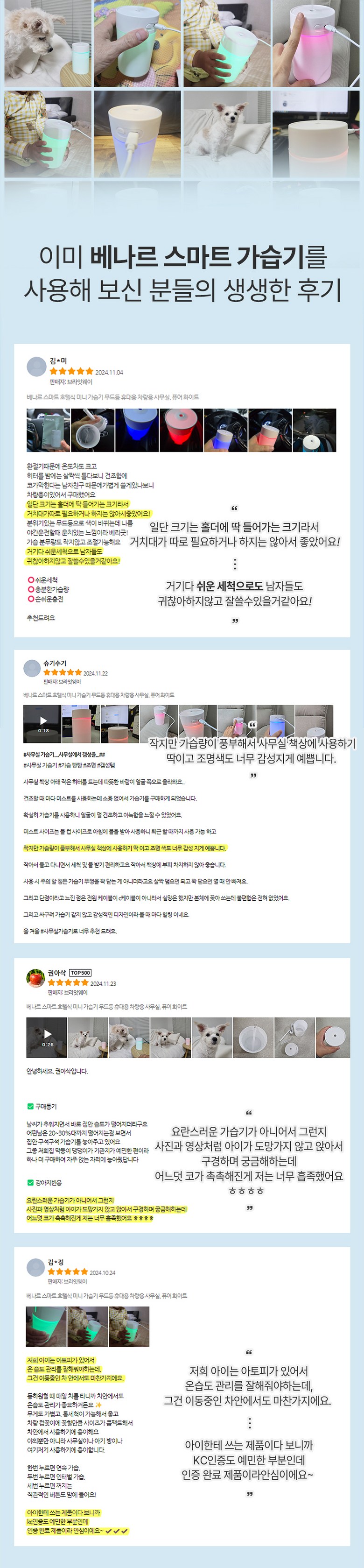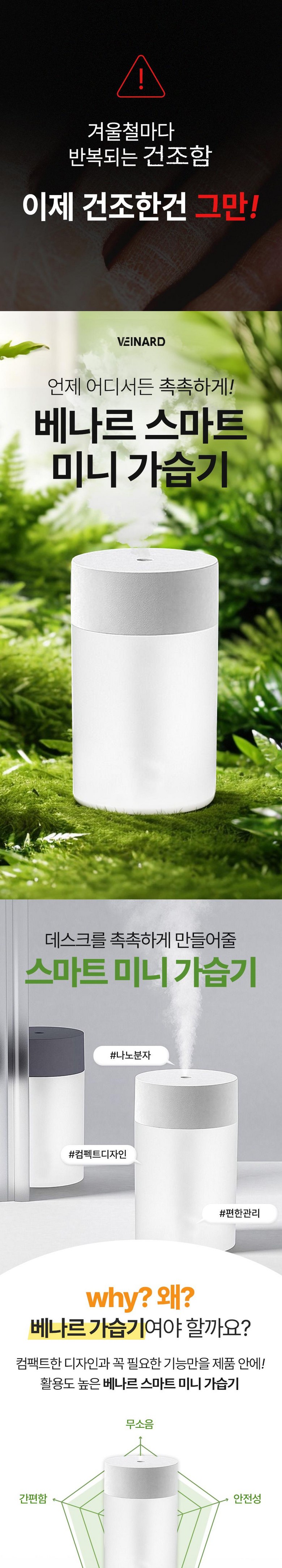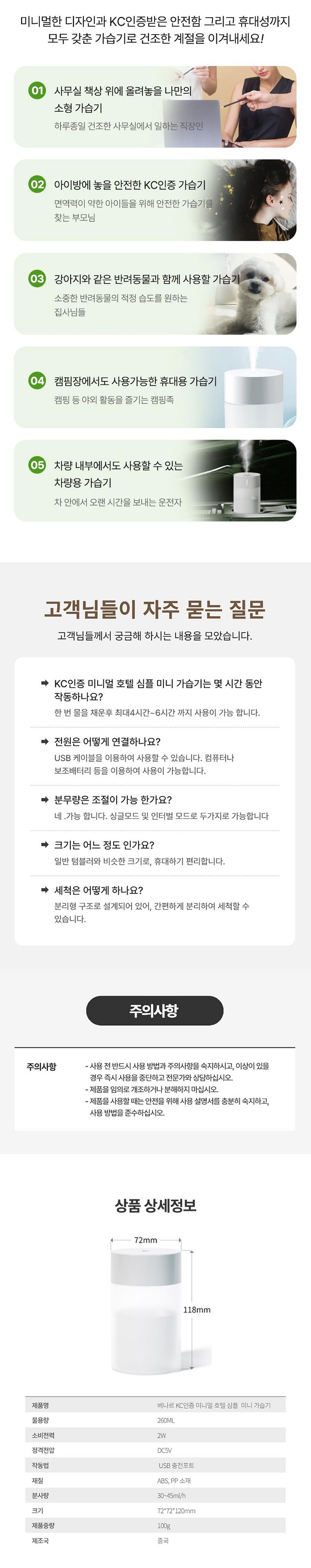 - 베나르 스마트 호텔식 미니 가습기 무드등 휴대용 차량용 사무실 필터 두개