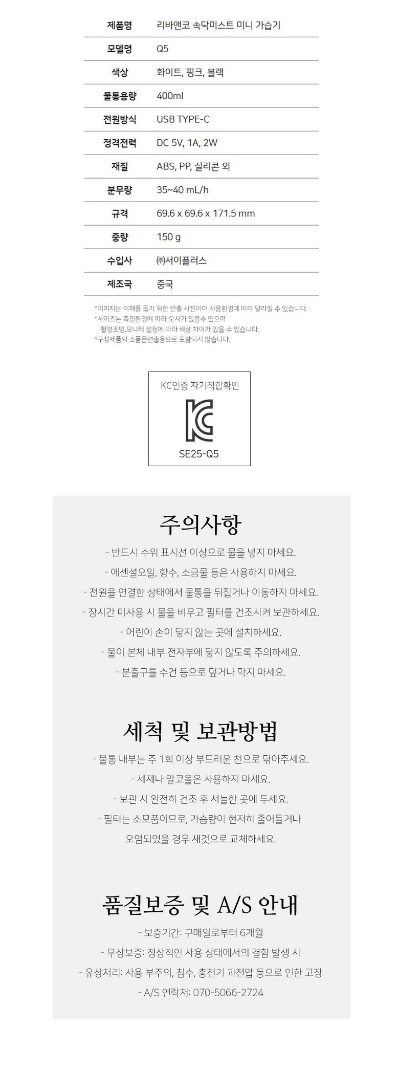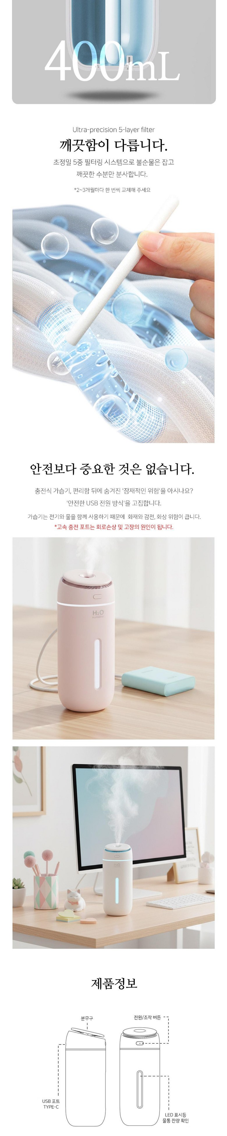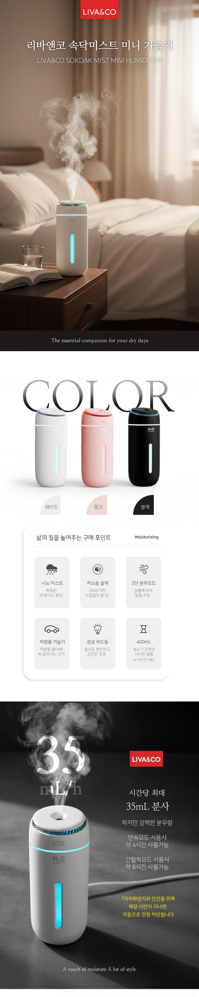 - 리바앤코 속닥미스트 미니 가습기 USB 사무실 공구방 침실 차량용