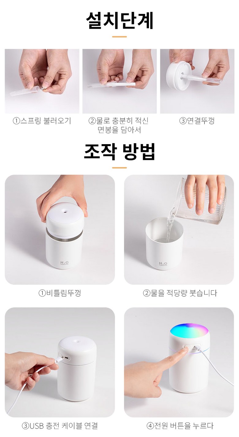 - Ditwo 미니 가습기 초음파 레인보우, 그레이