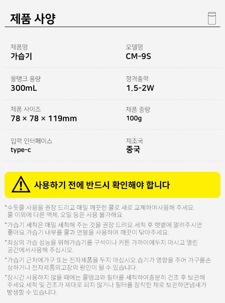 | A/S 책임자와 전화번호 | 상품페이지 참고 |