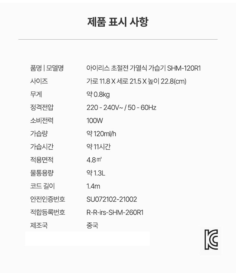 | 크기, 형태 (실외기 포함) | 상품페이지 참고 |