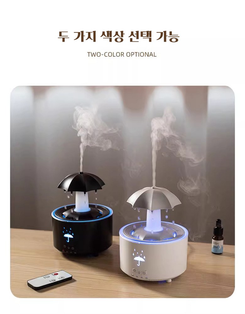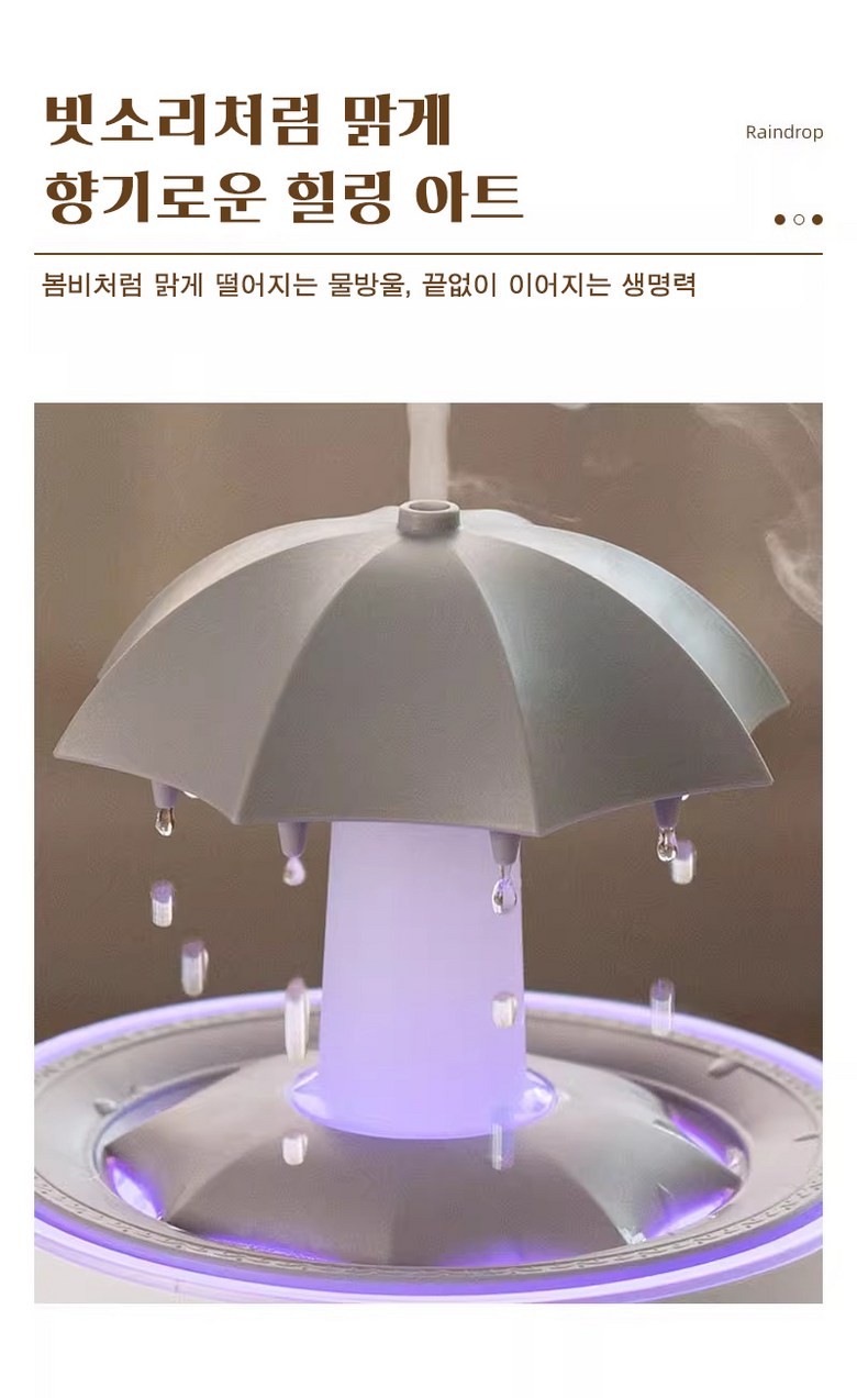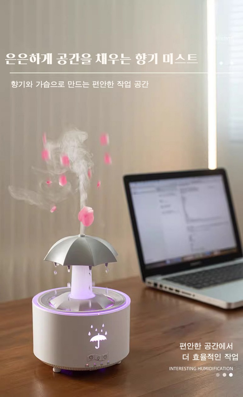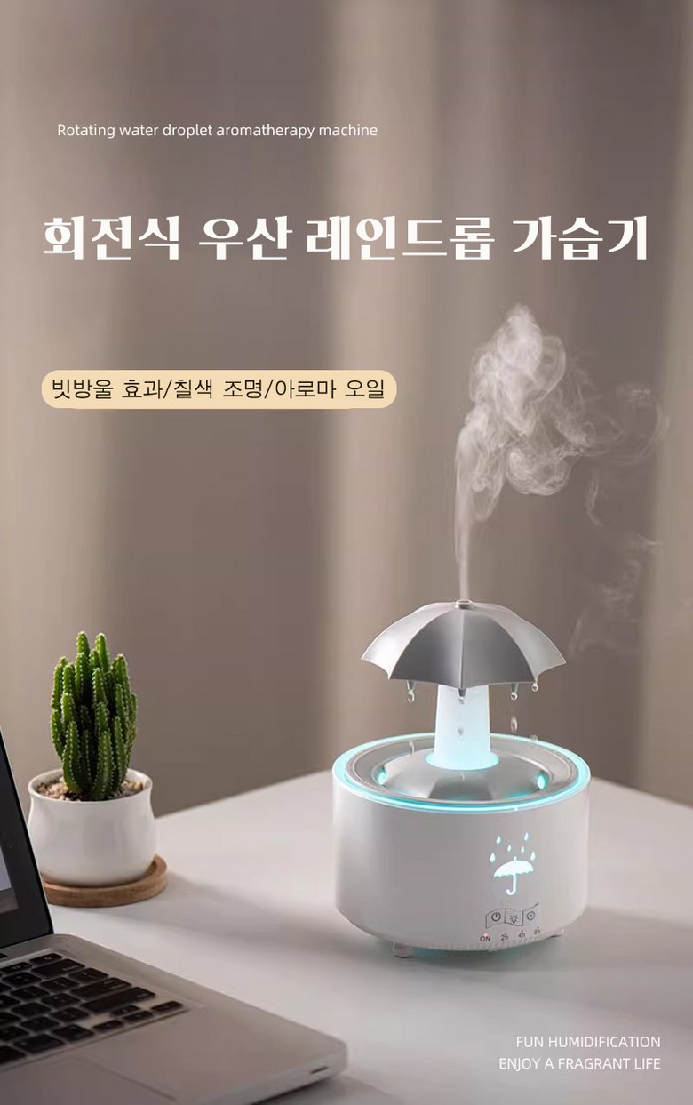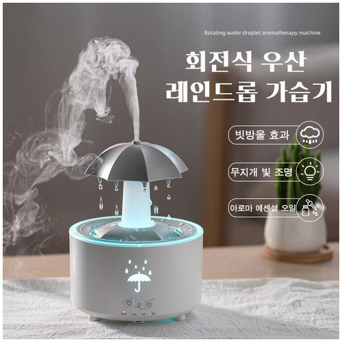 - 독일 기술 1/1+1 미니 가습기 우산 빗소리 가습기 무드등 초음파 사무용 탁상용 가열식 가습기 360회전 화이트