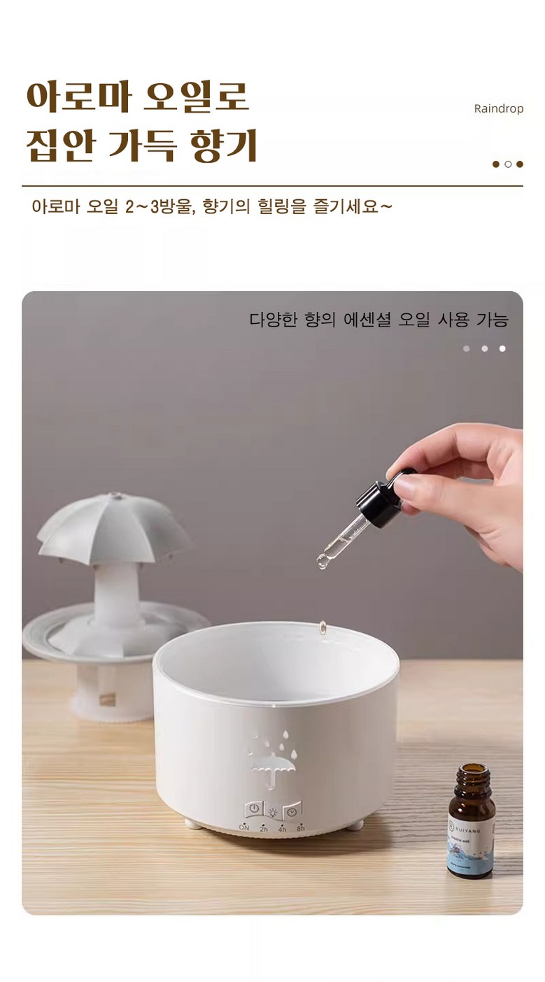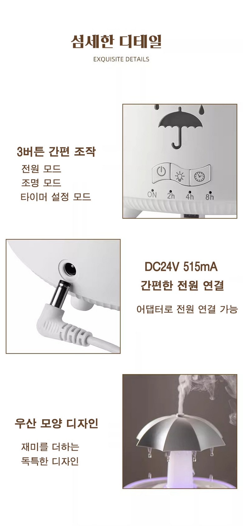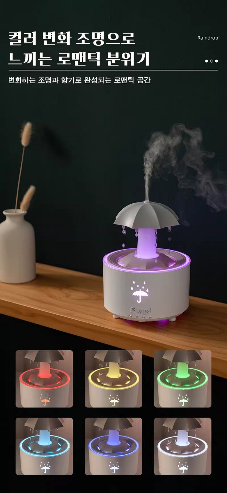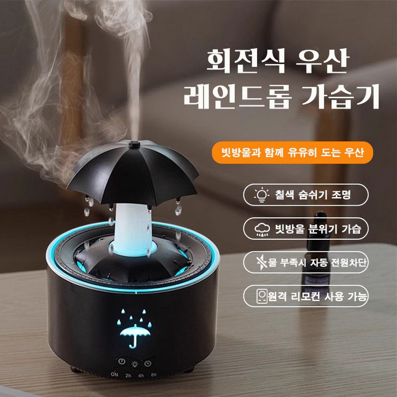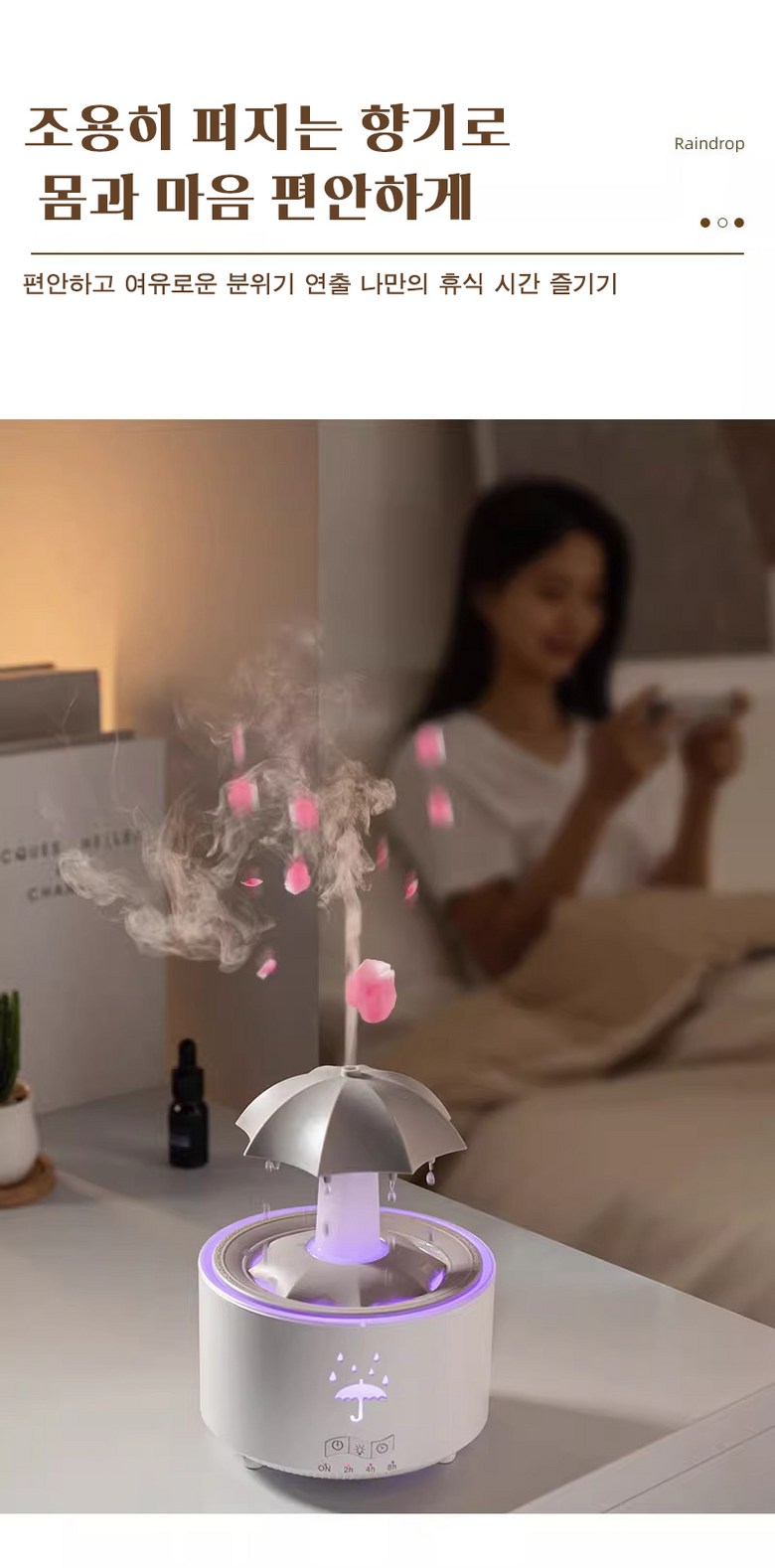 - 독일 기술 1/1+1 미니 가습기 우산 빗소리 가습기 무드등 초음파 사무용 탁상용 가열식 가습기 360회전 화이트