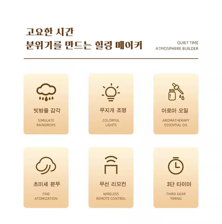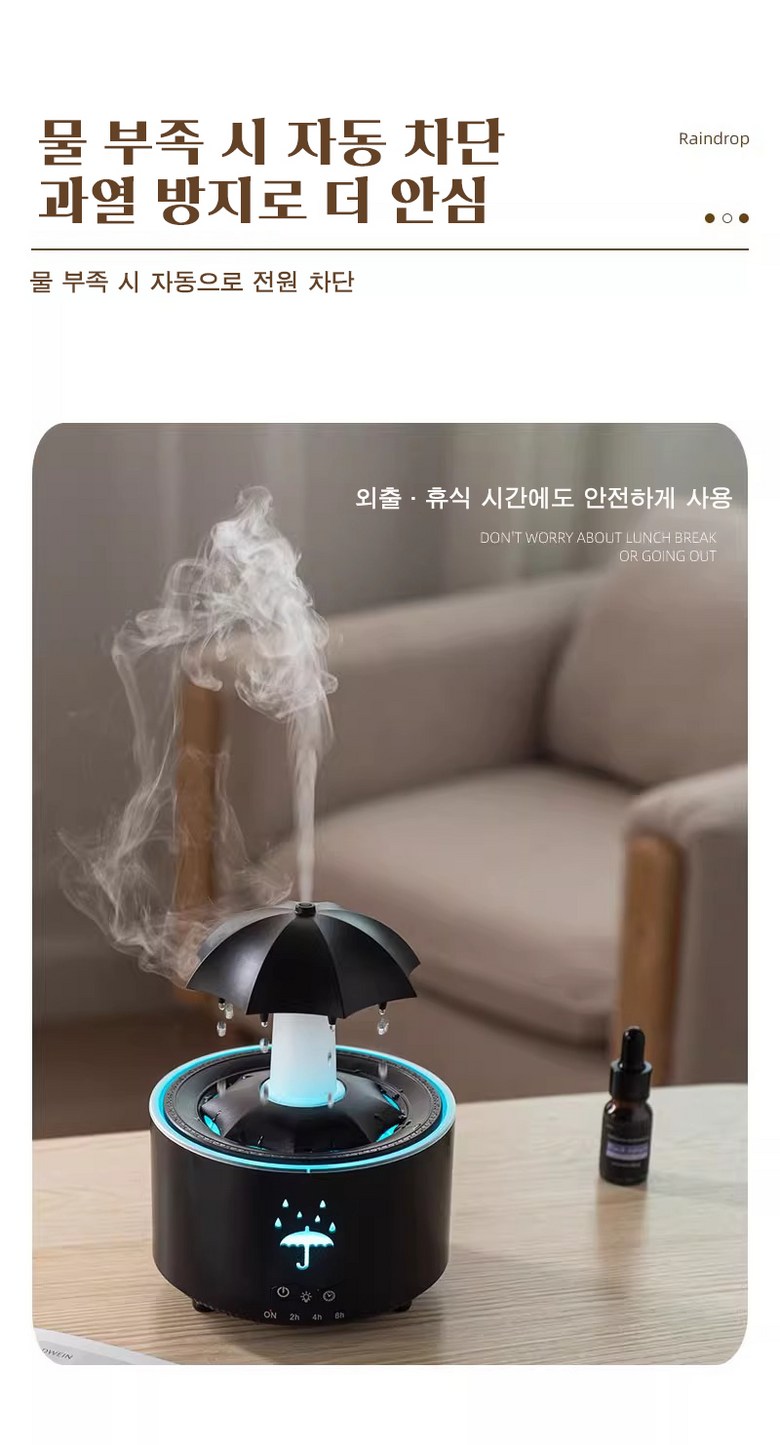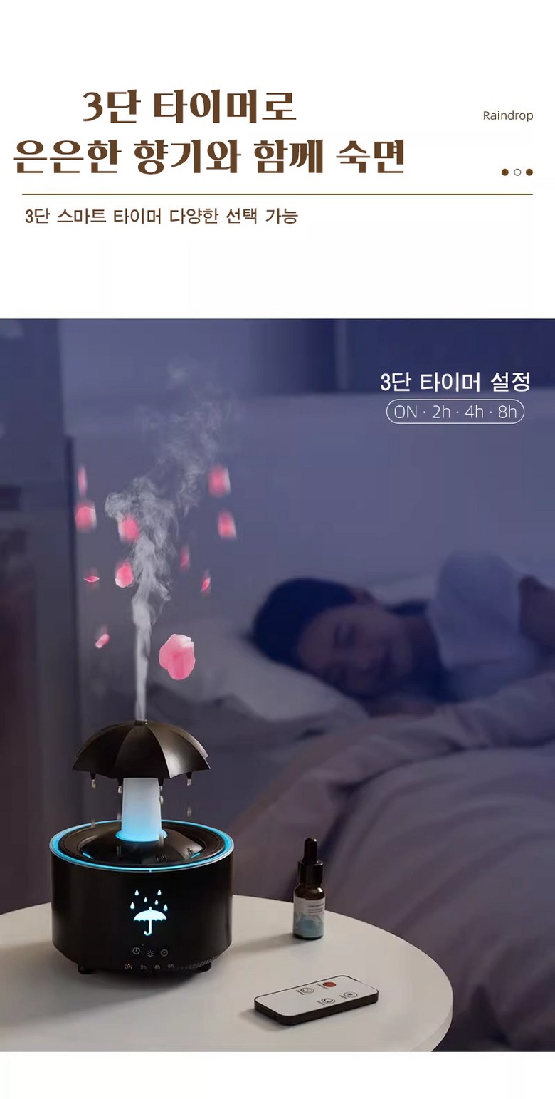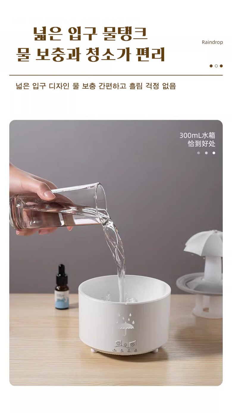 - 독일 기술 1/1+1 미니 가습기 우산 빗소리 가습기 무드등 초음파 사무용 탁상용 가열식 가습기 360회전 화이트