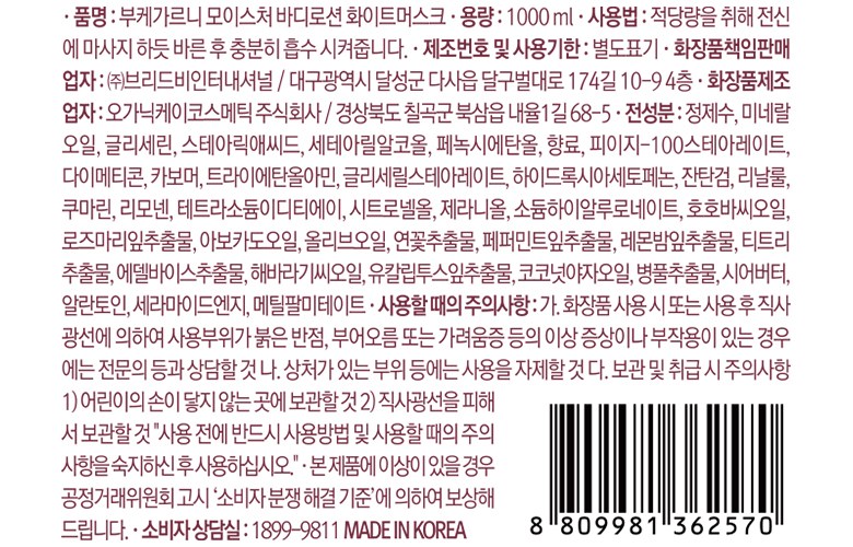 • 부케가르니 모이스처 바디로션 화이트머스크향, 1L, 1개