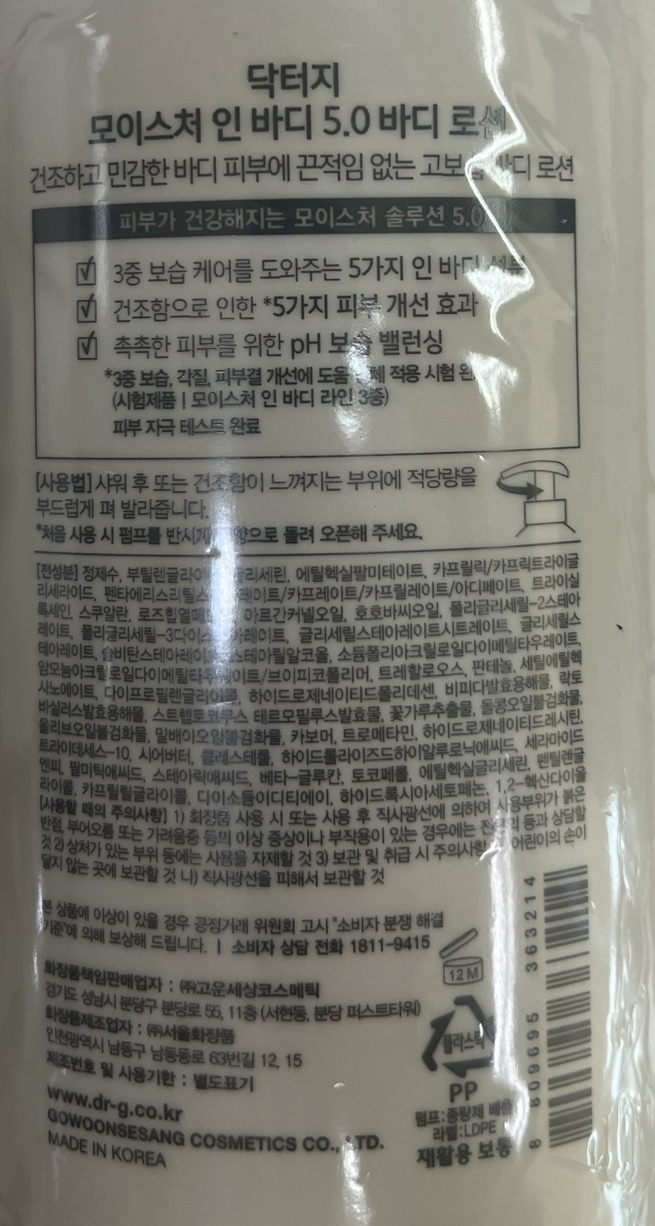 - 닥터지 모이스처 인 바디 5.0 고보습 바디 로션, 500ml, 1개