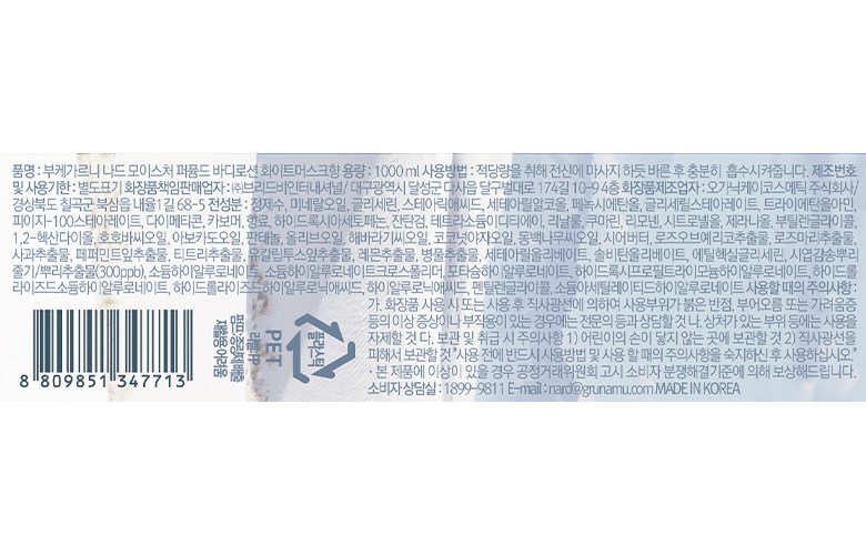 • 나드 모이스처 퍼퓸드 바디로션 화이트머스크향, 1L, 1개