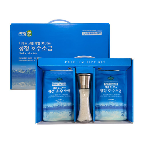 - [새벽애] 티베트고원 3100m 차카염호 호수소금 선물세트 (굵은소금 500g+가는소금 500g+그라인더)