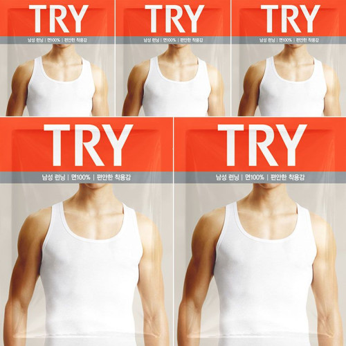 • TRY 남성용 민소매런닝 5매 40수 순면 100% 트라이