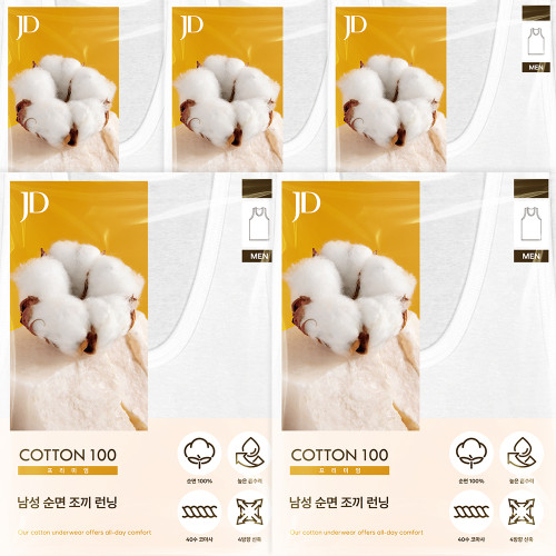 • 제임스딘 남성 부드러운 순면 남자 민소매런닝 5매