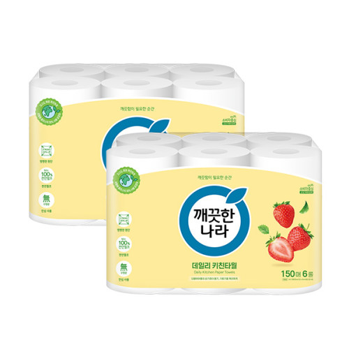 • 깨끗한나라 데일리 키친타올 그린패키지 150매 x 6롤 x 2팩