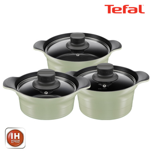 - [테팔] 인덕션 티타늄 아로마 통주물 3종세트 (뚝배기 18cm + 양수냄비 20cm + 전골냄비 24cm)