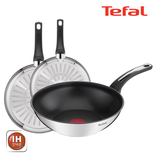 - [테팔] 팬&냄비 인덕션 스테인리스 스틸 뉴 이모션 3종세트 (프라이팬 18cm + 20cm + 볶음팬 28cm)