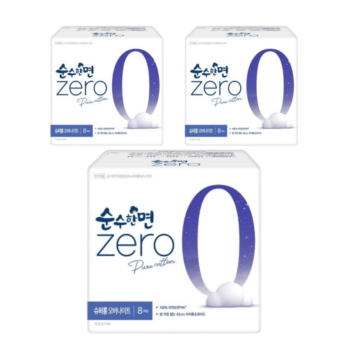 깨끗한나라 순수한면 제로 슈퍼롱 오버나이트 8P x 3팩
