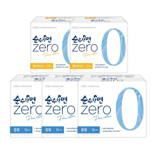 • 깨끗한나라 순수한면 제로 중형(16P) 3팩 + 팬티라이너(20P) 2팩