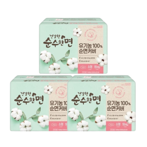 • 깨끗한나라 건강한 순수한면 유기농 순면 소형(18P) 3팩