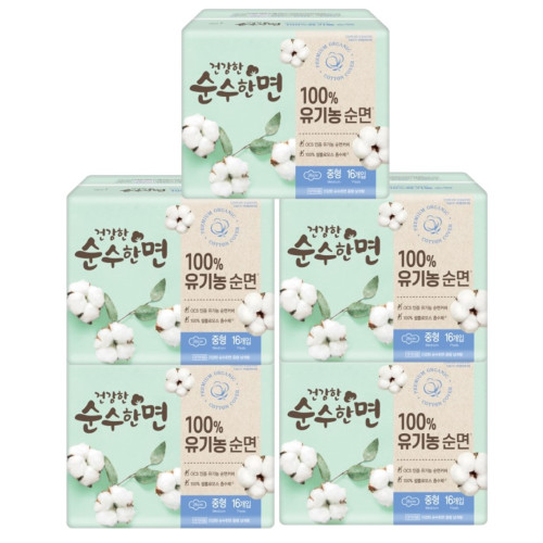 • 깨끗한나라 건강한 순수한면 유기농 순면 중형(16P) 5팩