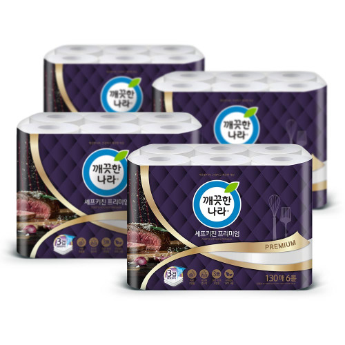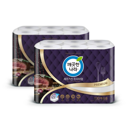 - 깨끗한나라 - 셰프키친 프리미엄 키친타올 130매 6롤 (2팩, 4팩 선택 구성)