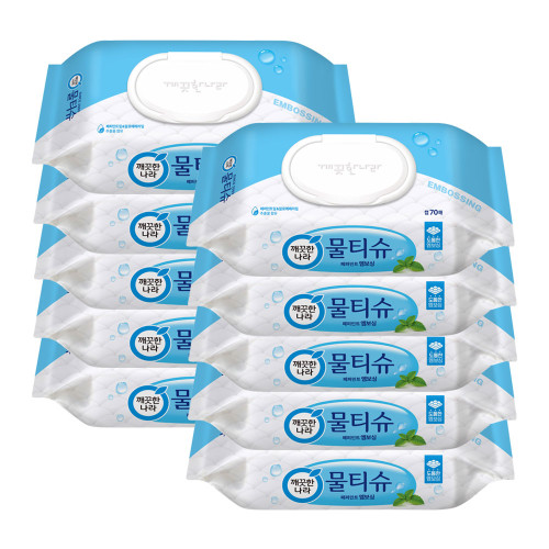 • 깨끗한나라 - 물티슈 페퍼민트 엠보싱 70매 10팩
