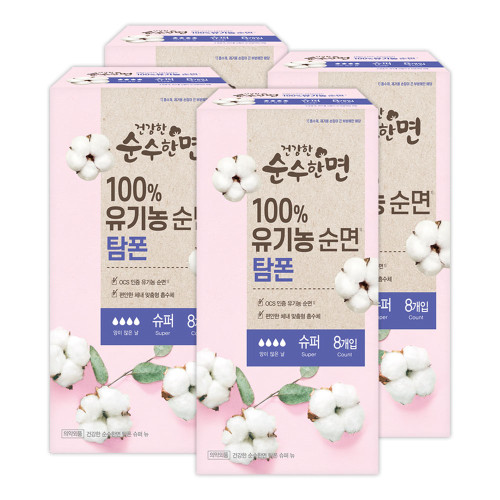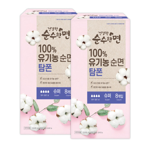 깨끗한나라 순수한면 유기농 탐폰 슈퍼 8개입 (2팩,4팩,16팩 선택 구성)
