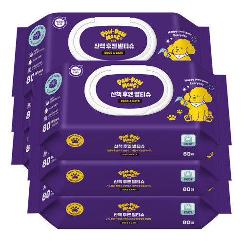 깨끗한나라 포포몽 산책후엔 발티슈 물티슈 80매 (4개, 6개 선택 구성)