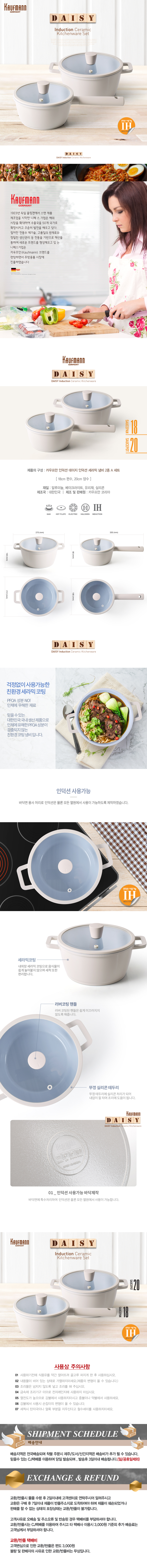 - [카우프만] 데이지 인덕션 냄비 2종 세트(A형) 18cm편수+20cm양수