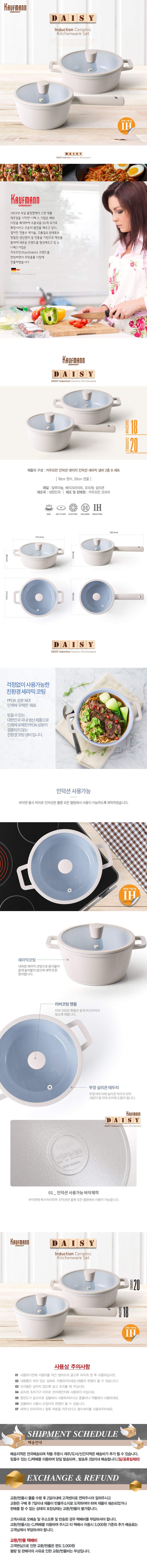 - [카우프만] 데이지 인덕션 냄비 2종 세트(B형) 18cm편수+20cm전골