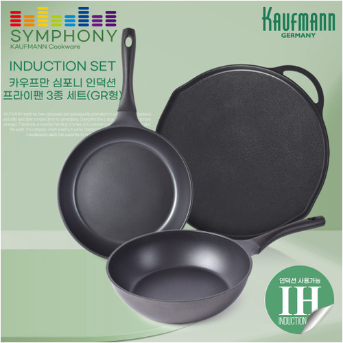 - [카우프만] 심포니 인덕션 프라이팬 3종 세트(GR형) 프라이팬28+궁중팬28+그리들38