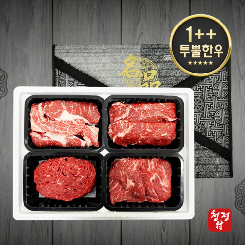 - [청정촌] 1++등급 투뿔 한우 구이정육 선물세트 / 등심+채끝+불고기+국거리 (1Kg)