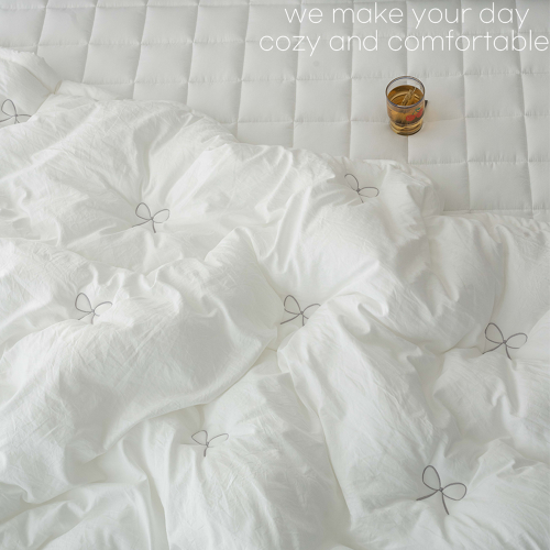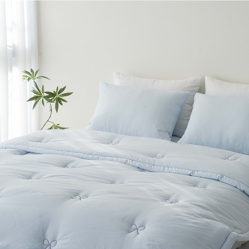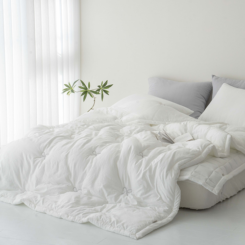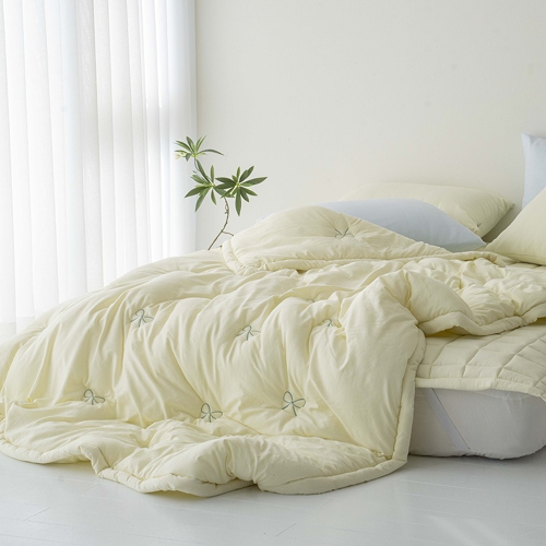 - 송화 바닐라 알러지케어 세미마이크로 귀여운 리본 자수 먼지 없는 사계절 차렵이불 4가지 색상