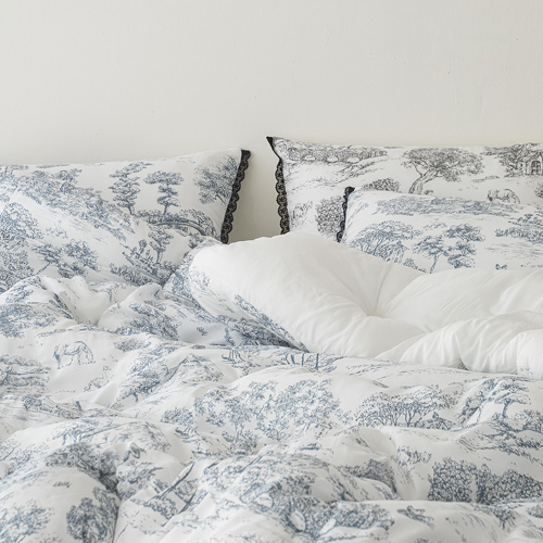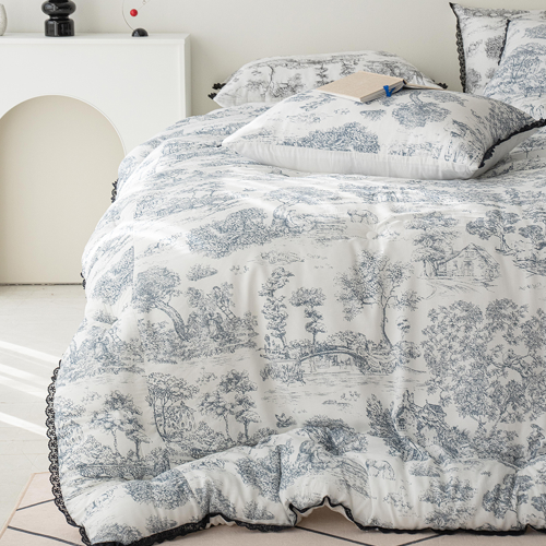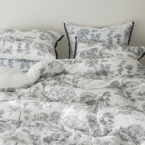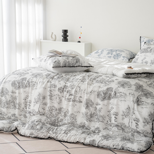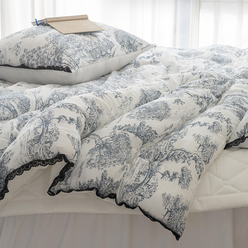 - 송화 몽슈 모달 100% 프랑스 명화 뜨왈패턴 프릴 디자인 사계절 고급 이불 2가지 색상
