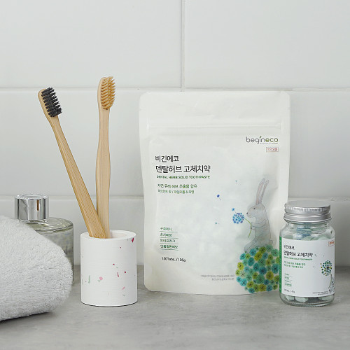 비긴에코 덴탈허브 고체치약 150정 1팩+대나무 칫솔 4입