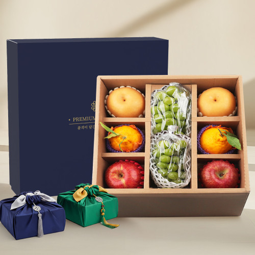 - 프리미엄 혼합과일 선물세트 4kg내외(사과2 배2 한라봉2 샤인2)보자기포장