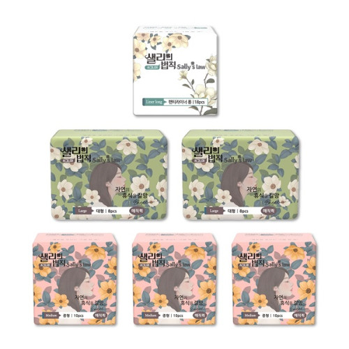 - ★실속특가★샐리의법칙 생리대 매직퀵 시그니처 중형 3팩 + 대형 2팩 + 팬티라이너 1팩