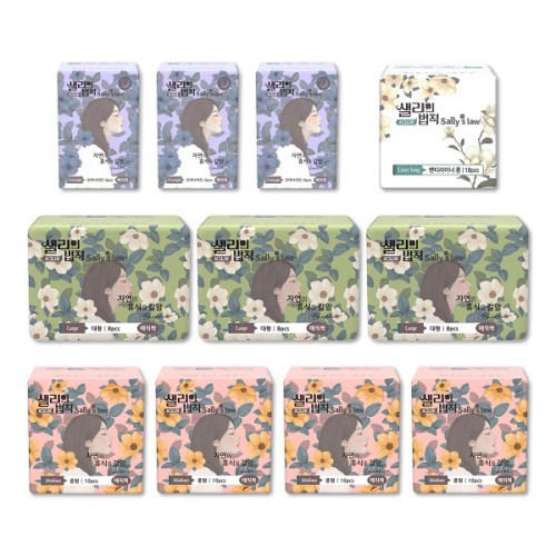 - ★두달특가★샐리의법칙 생리대 매직퀵 시그니처 중형 4팩 + 대형 3팩 + 라이너 1팩 + 오버 3팩
