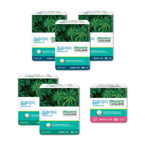 - ★실속특가★순수데이 오가닉 프리미엄 유기농생리대 중형 3팩 + 대형 2팩 + 팬티라이너 1팩
