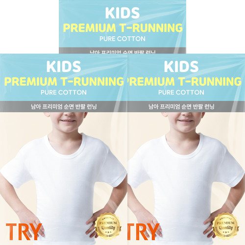 TRY 남아 학생 코튼 베이직 반팔 런닝 3매 세트 주니어 키즈 아동 트라이
