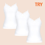 - 트라이 여 순면 레이스 케미솔 민소매 여자 런닝 3종 세트 레이스 끈런닝 메리야스 런닝
