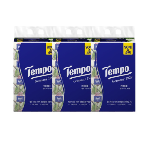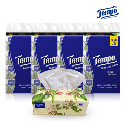 - 템포 소프트팩 4겹 천연펄프 미용티슈 90매 4입 (1팩,2팩,3팩,4팩,5팩 선택 구성)