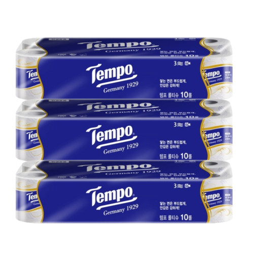 - 독일 템포 3겹 프리미엄 천연펄프 화장지 10롤 107mm광폭(1팩~6팩 선택 구성)