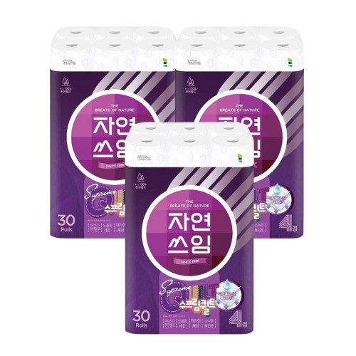 - 자연쓰임 천연펄프 수프림퀼트 화장지 4겹 30롤 (1팩,3팩 선택 구성)