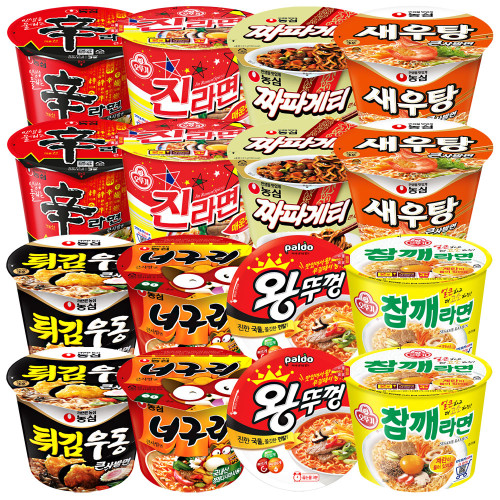 - 큰컵16개)신라면2+진라면매운맛2+짜파게티2+새우탕2+튀김우동2+너구리2+왕뚜껑2+참깨라면2